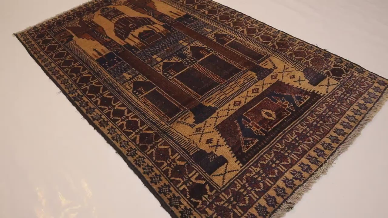3'0" × 4'10" ft Vintage 1970s Afghan Prayer Rug – Hand-Knotted Wool | Turkmen Tribal Oriental Carpet