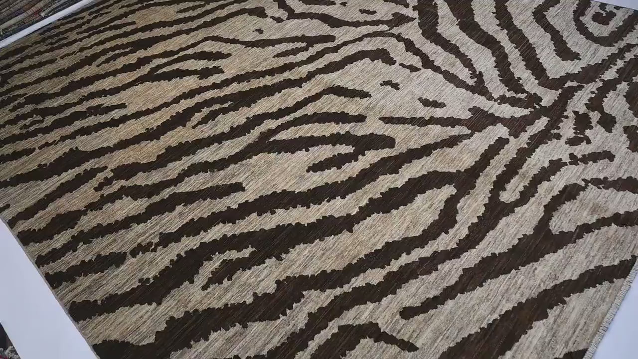 9×12 ft Natural Gabbeh Rug – Hand-Knotted Afghan Wool | Modern Zebra Design